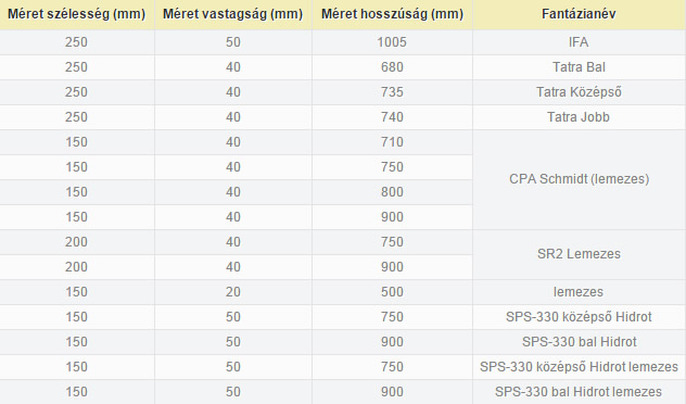 STANDARD MÉRETRE GYÁRTOTT HÓTOLÓ GUMIÉLEK